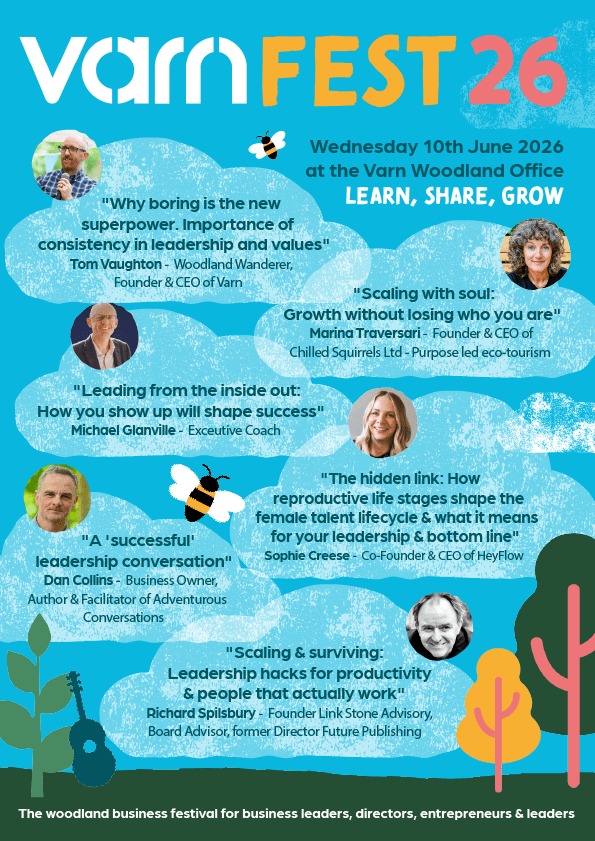 The purpose of VarnFest is to get business owners and leaders together in our unique outdoor woodland office setting in Wiltshire, listening and learning from others who have fascinating leadership stories to share.