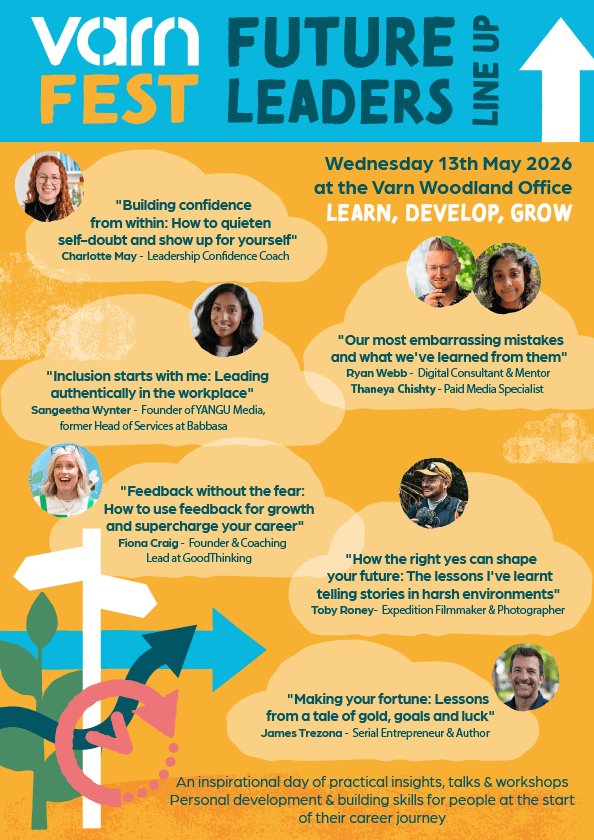 The idea for VarnFest Future Leaders came about from our team at Varn, who spend their time being a brilliant SEO, GEO and data agency and getting websites to be visible for our happy clients. We realised that there was something missing in the South West – leadership and personal development training for people who were just beginning their career. So we decided to host a helpful and inspiring leadership training event in our outdoor woodland office, for young people in the South West.